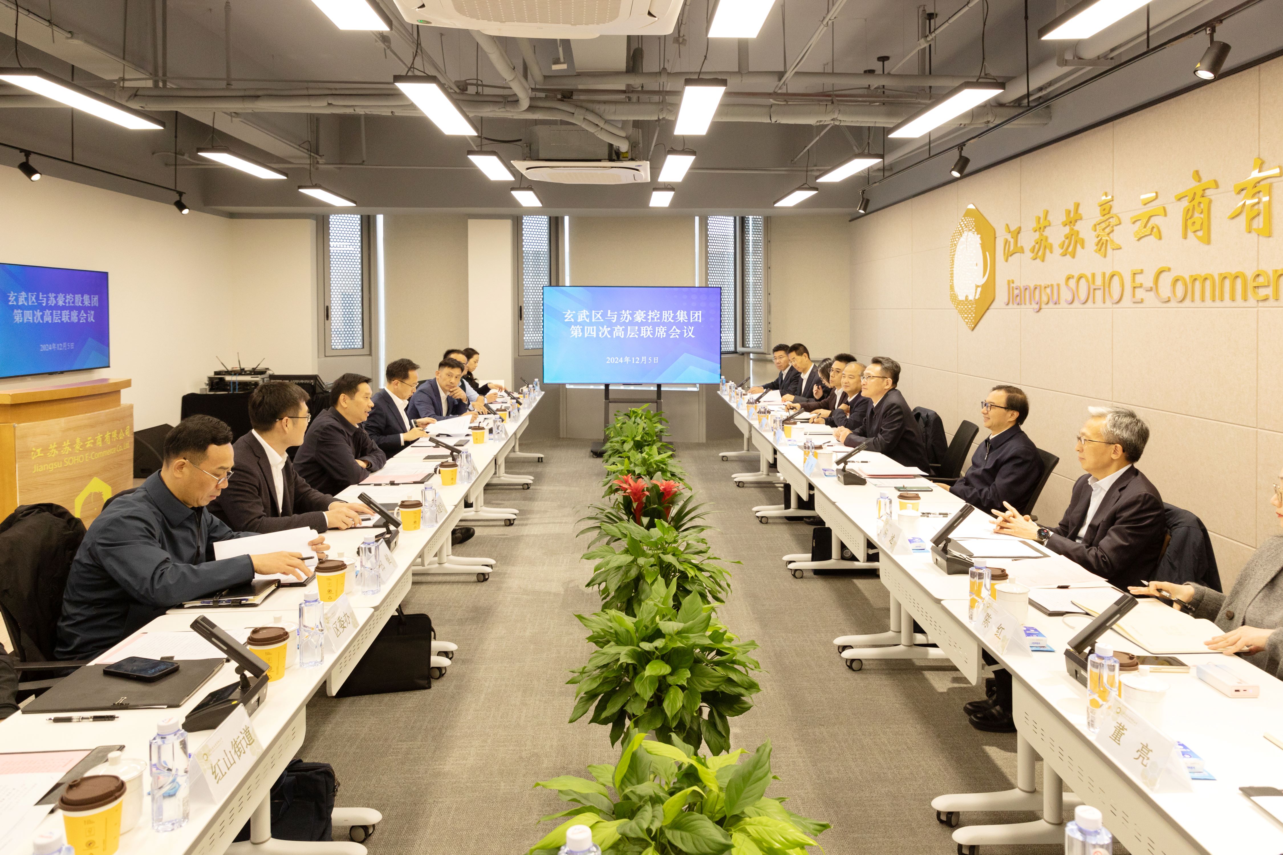 12月5日下午,蘇豪控股集團與南京市玄武區(qū)第四次高層聯(lián)席會議在江蘇中亞中心舉行。蘇豪控股集團黨委書記、董事長周勇,總裁陳述,南京市玄武區(qū)委書記閔一峰、區(qū)長張志超出席會議并講話。雙方圍繞江蘇中亞中心運營發(fā)展、深化共建“一帶一路”合作、推進(jìn)產(chǎn)業(yè)融合發(fā)展等展開深入交流。集團副總裁丁海,玄武區(qū)委常委、副區(qū)長朱建宇,副區(qū)長唐承武參加座談。周勇對玄武區(qū)委、區(qū)政府長期以來關(guān)心支持蘇豪控股集團改革發(fā)展、攜手推動建設(shè)江蘇中亞中心表示感謝,他表示,按照省委、省政府部署要求,蘇豪控股集團積極發(fā)揮重組整合放大效應(yīng),著力推動經(jīng)營質(zhì)