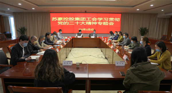 11月3日下午,蘇豪控股集團(tuán)工會(huì)聯(lián)合會(huì)組織召開專題會(huì)議,集體學(xué)習(xí)黨的二十大精神,安排部署集團(tuán)工會(huì)系統(tǒng)學(xué)習(xí)宣傳貫徹工作,動(dòng)員集團(tuán)各級(jí)工會(huì)立即動(dòng)起來、深入學(xué)起來,迅速掀起學(xué)習(xí)宣傳貫徹黨的二十大精神熱潮。集團(tuán)黨委副書記、工會(huì)聯(lián)合會(huì)主席姚蓓主持會(huì)議,各所屬工會(huì)主席、相關(guān)工會(huì)委員及集團(tuán)總部部門代表參加會(huì)議。姚蓓指出,集團(tuán)各級(jí)工會(huì)要把學(xué)習(xí)宣傳貫徹黨的二十大精神,作為當(dāng)前和今后一個(gè)時(shí)期的首要政治任務(wù),結(jié)合企業(yè)實(shí)際,作出專題部署,著力抓好落實(shí),既要營(yíng)造宣傳的“熱度”,也要確保學(xué)習(xí)的“精度”。要突出思想政治引領(lǐng),逐層思想發(fā)